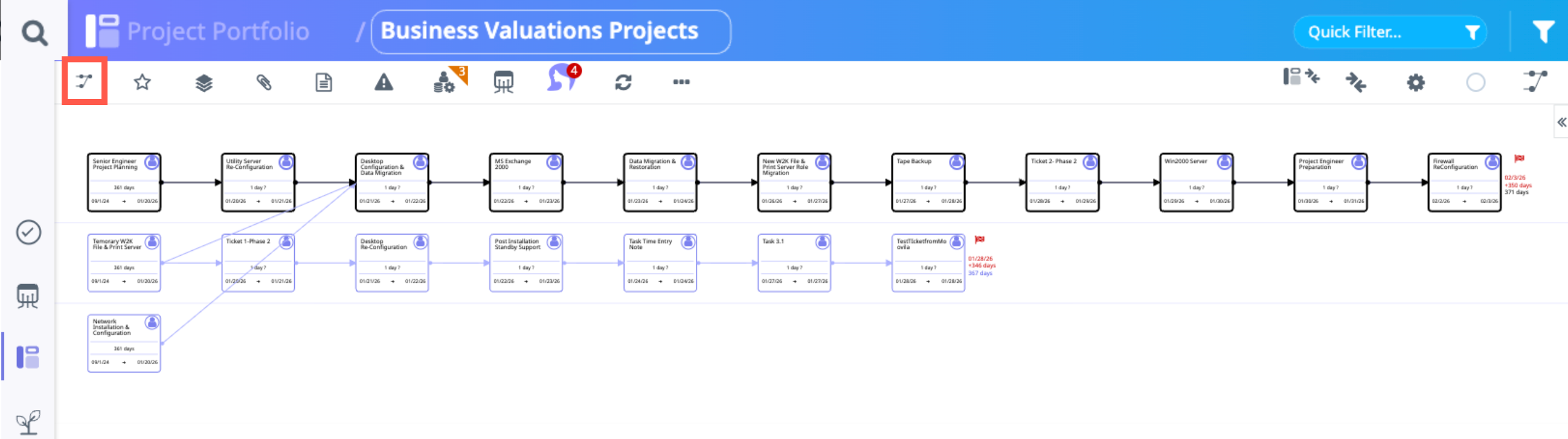 - To review the dependencies that have imported with these new phases, move into the Critical Path view.