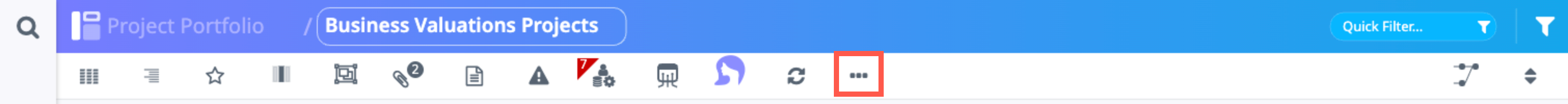- Import the shell project into Moovila. From the Project Portfolio, click on the More Options icon in the menu, then select the Import Project option.