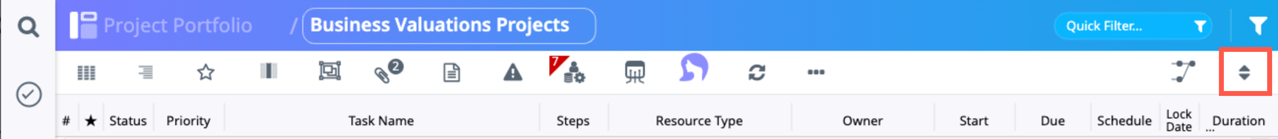 The Filter Projects panel opens. Here you may opt to display Projects as well, or to display only Projects. Click Apply to save that filter setting.