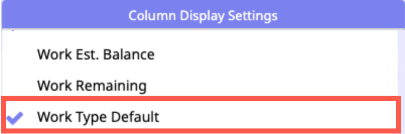 - The Column Display dropdown opens. Scroll down and click on the Work Type Default option.
