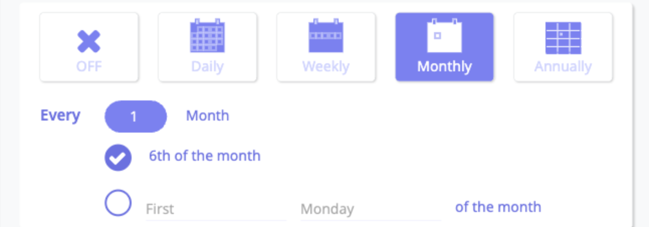 Frequency: Choose one of the following to set up the interval at which the recurring task will occur: