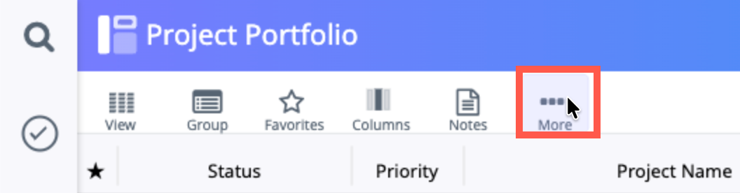 1. Import the shell project into Moovila. From the Project Portfolio, click on the More Options icon in the menu, then select the Import Project option.