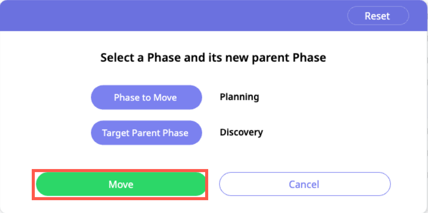 d. Click the Move button to send the phase to its new location.