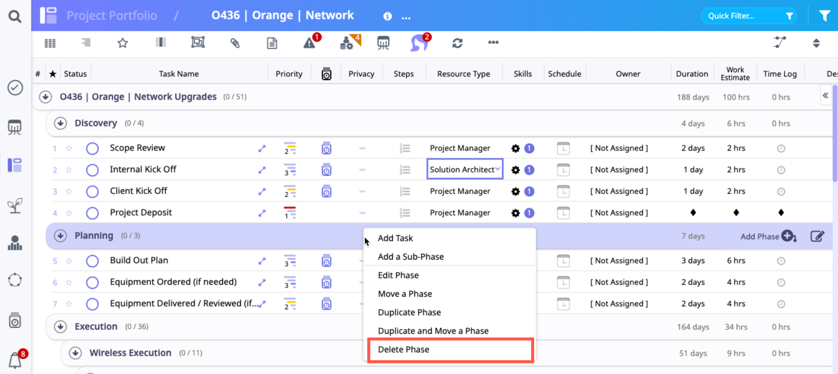 - Deleting a Phase: