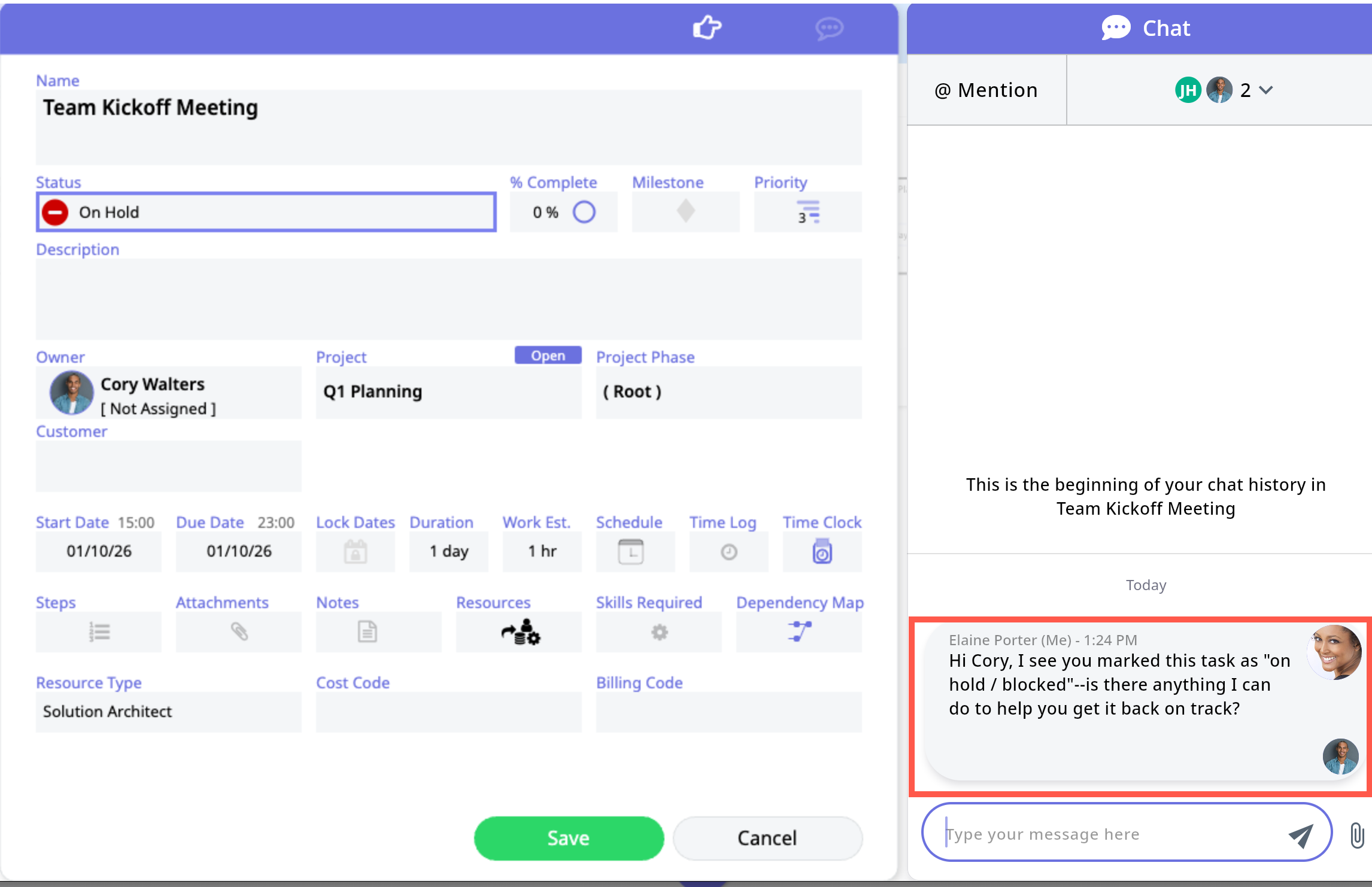 What's next: Contact the task owner to determine what the issue is so that it can be remediated and work can begin.