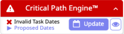 What's next: If the dates for your project are flexible, you may choose to accept delays and the new due date of your project. In the Critical Path view of your project the impact of the delayed task(s) will be presented along with a revised forecasted completion date. Click the Update Timeline button to proceed.