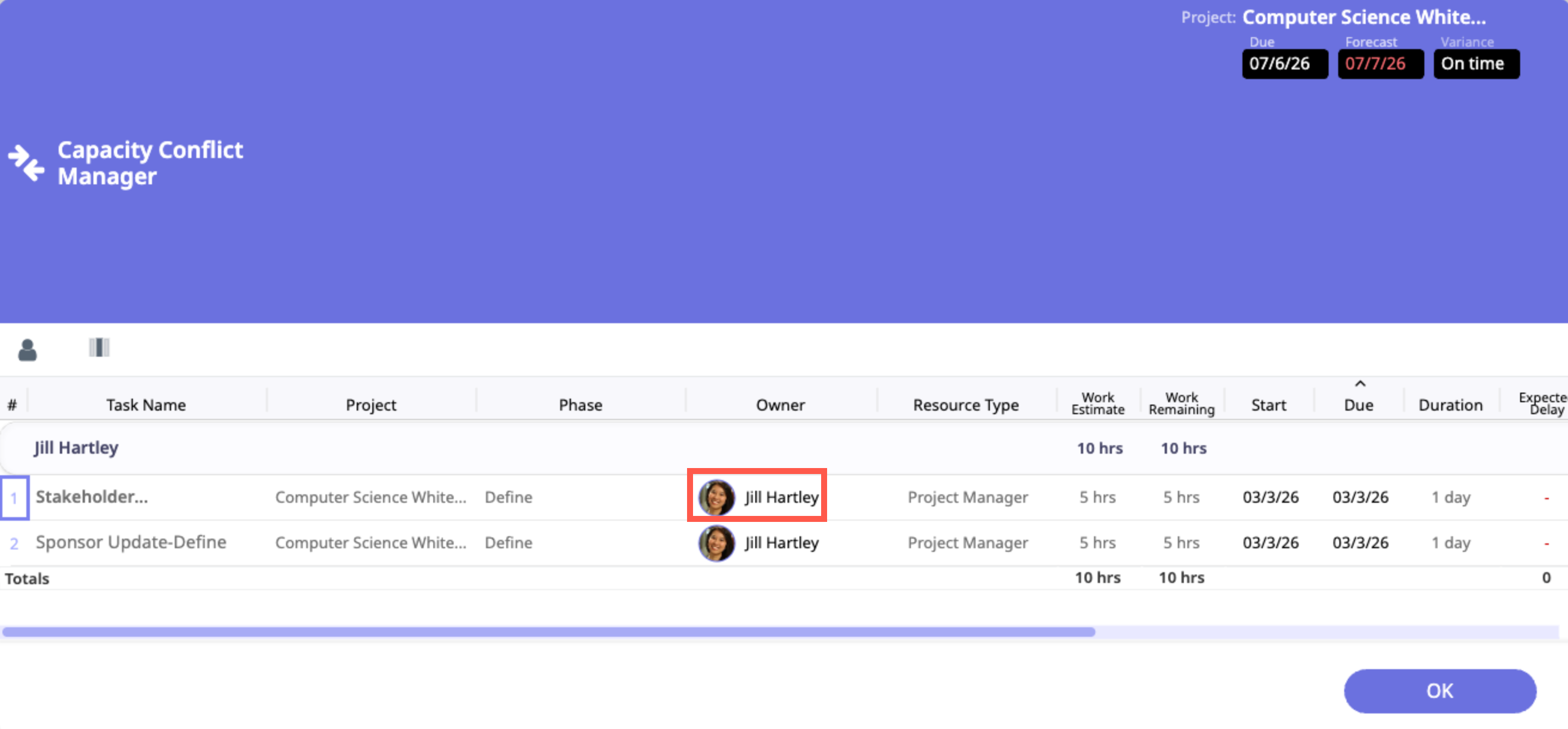 Why it matters: Team members with workloads that exceed their set capacity are much less likely to be able to complete all of the tasks assigned to them on time.