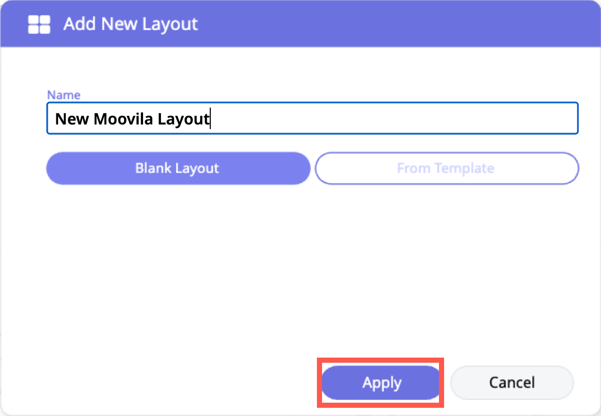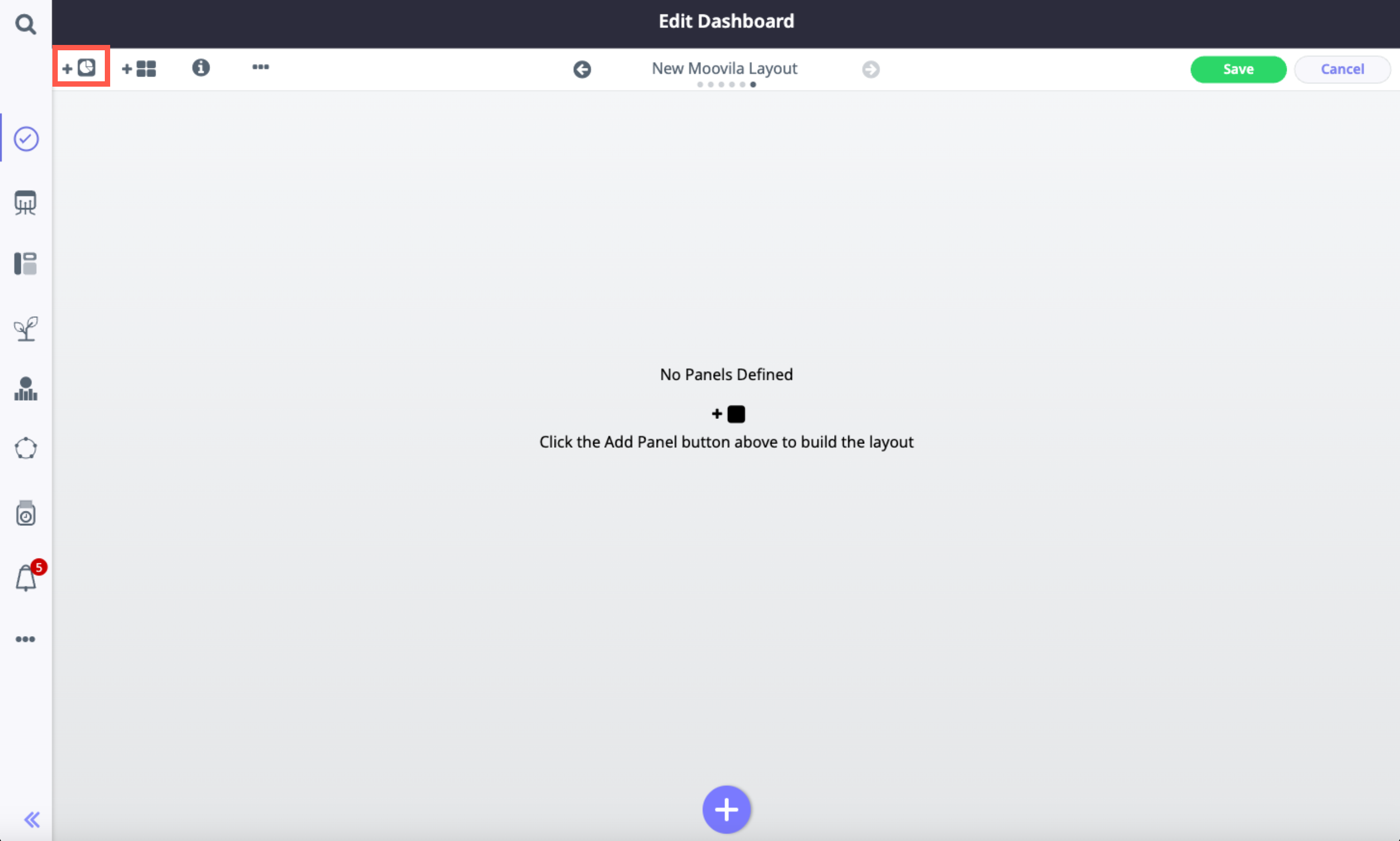 a. Enter a Name (required) for the layout, and choose its order from the dropdown menu (this determines the order in which it will be displayed with relation to other panels). Click the Apply button to create the layout. b. The new layout will open, and it will be completely blank. Click the Add Panels button to begin adding to this dashboard layout. Learn more about adding panels here. -