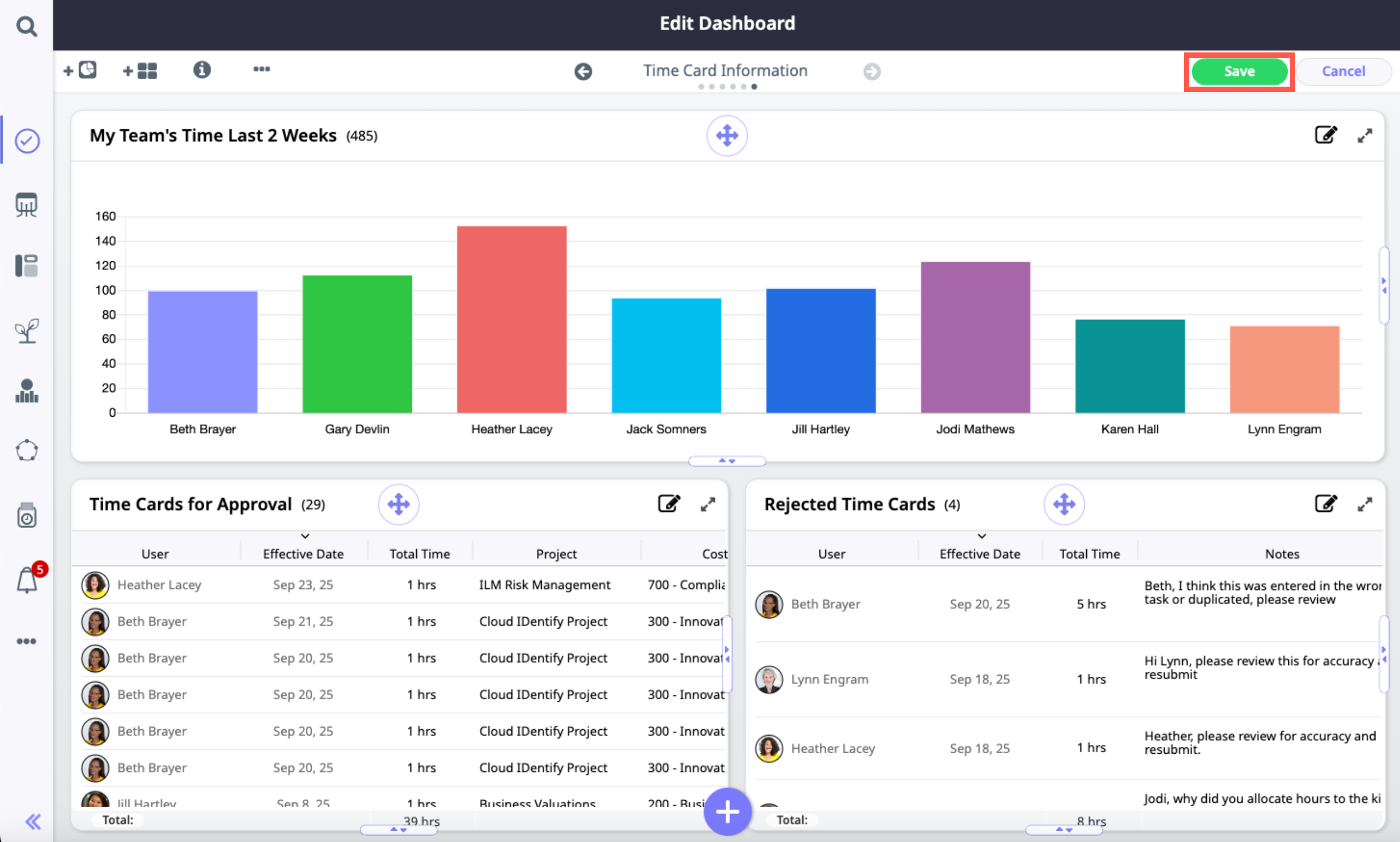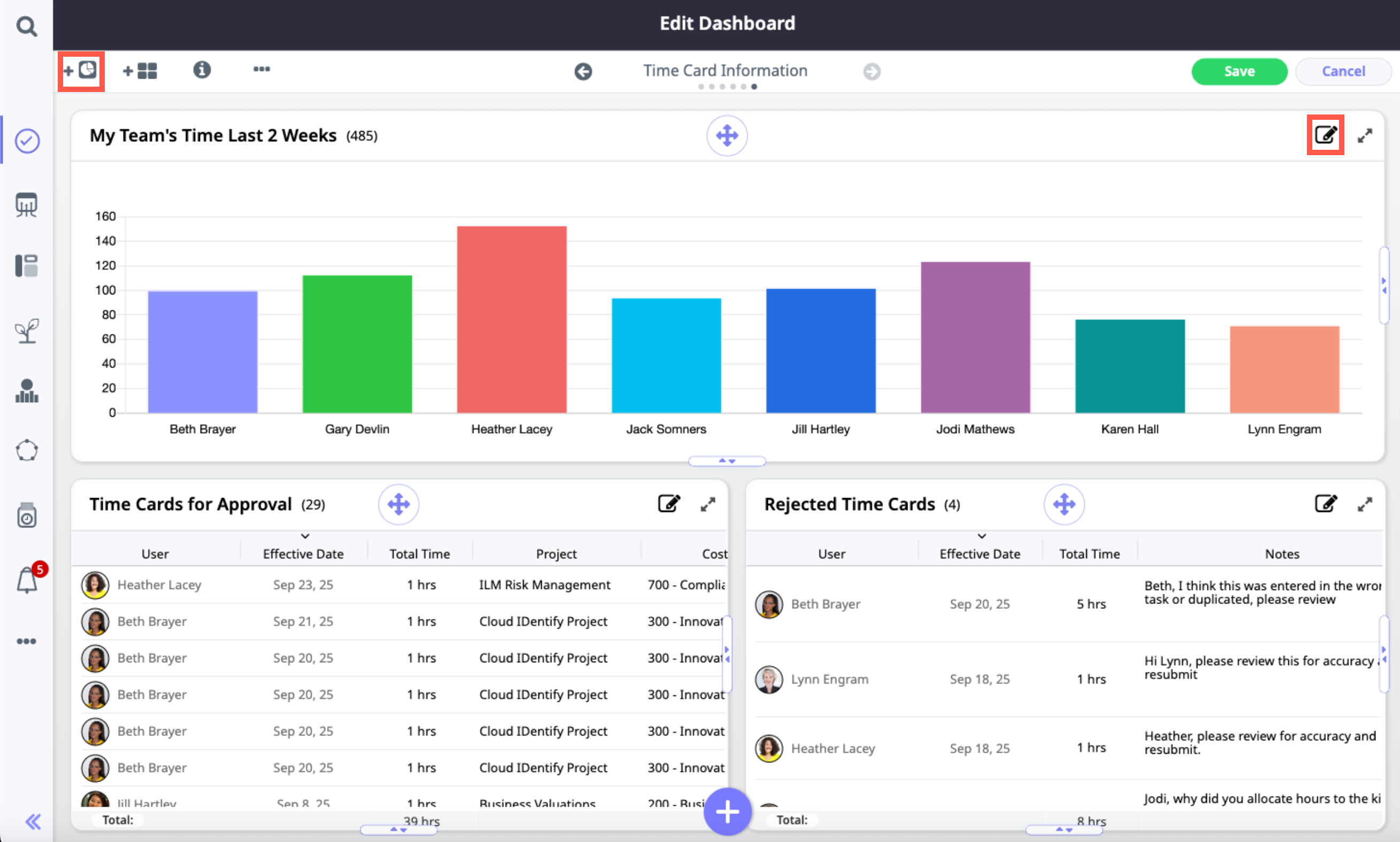 - To add layouts to any dashboard--Task, Project Detail, or Project--first click the Edit icon in the upper right corner.