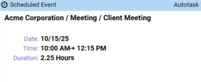 Smart Schedule Integration for Autotask: Autotask calendar details have been integrated into Moovila’s Smart Schedule.