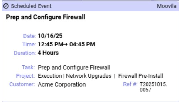 - Moovila Scheduled Events and Autotask Service Calls that are part of synced projects will now be synced bi-directionally across systems. Learn more about the details of how fields map between the two systems here.