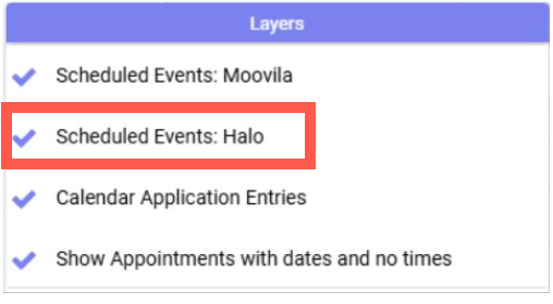 - To turn on Smart Schedule for HaloPSA, open Layers and select Scheduled Events: HaloPSA