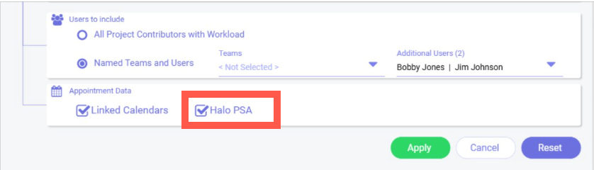 - This data can be pulled into Resource Capacity via Filters > Appointment Data > Halo PSA.