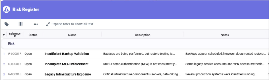 An “Expand rows to show all text” option has been added so that, when used, all available text for a risk item will be displayed.