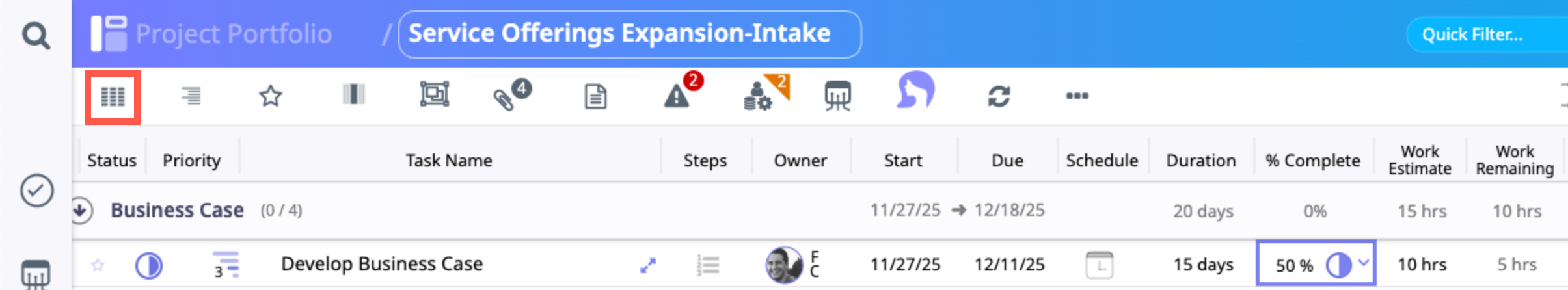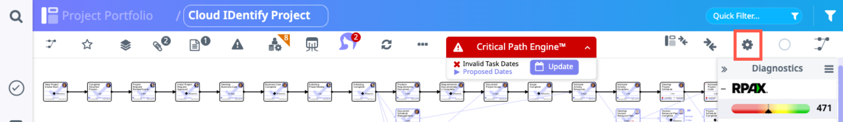 - The Critical Path view opens. Click the Configure icon in the upper right corner of the screen.