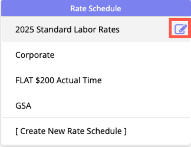 - To edit a rate schedule, click the Edit icon that appears to the right.