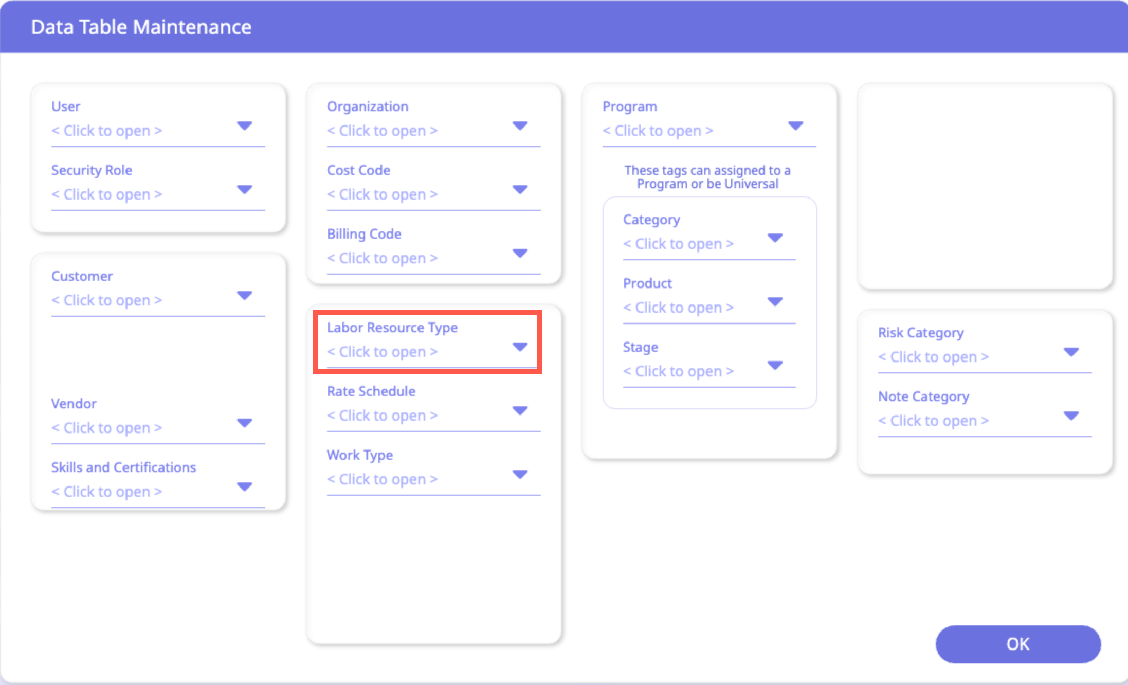 - To add a labor resource type, scroll to the bottom of the menu and choose the Create New Resource Type option.