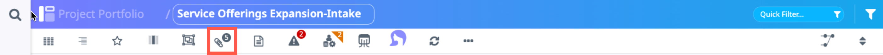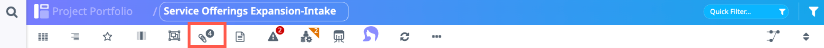 - To add attachments at the project level, click on the Attachments icon in the main menu. A count will appear next to the icon if there are already files in the Attachment Repository. These files may have been added at the task or project level--all files that a user has the rights to see will appear in this repository.