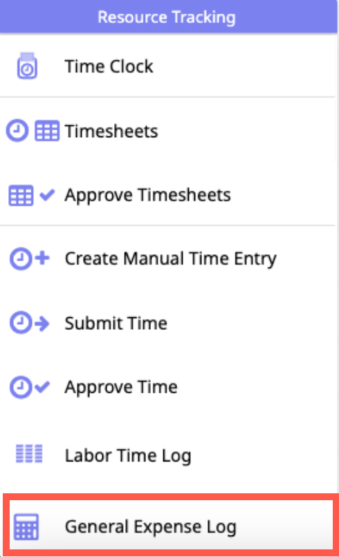 - The Resource Tracking menu opens. Select the General Expense Log option from the menu.